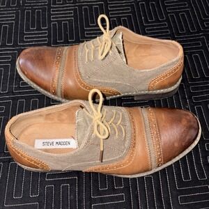 Steve Madden Camrin Brown Leather Canvas Lace Up Oxfords 9 Men's Dress Shoes