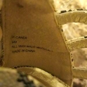 Heels are about 5-6". Great condition. Only flaw with these heels is on left shoe inside is a small peel of the fabric insole. Not noticable unless off. Very small & doesn't affect shoes