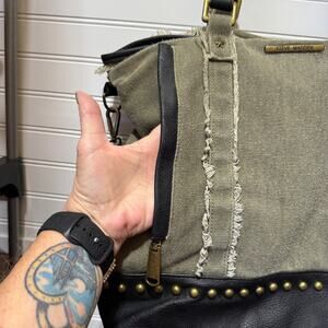 Steve Madden Canvas & Faux Leather with Studs Tote/Shoulder Bag
