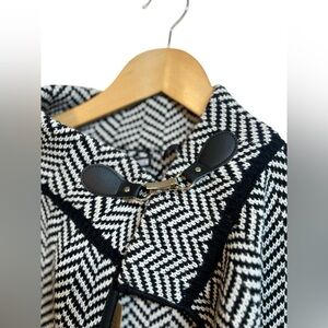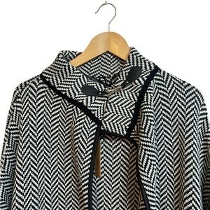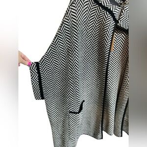 Tags: cape, shawl, jacket, cardigan, sweater, knitted, Fall, black, white, warm, cozy, winter, chevron print, poncho