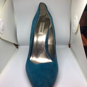 These beautiful Carolina blue suede shoes are even more beautiful in person. Worn only once. Size 11. 4" heel. Update: Took a couple more pics in natural light to show color better.