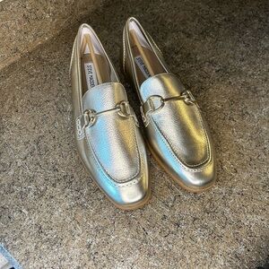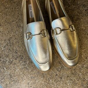 Steve Madden Carrine Gold Leather Slip On Almond Toe Flat Dress Loafers gold 9