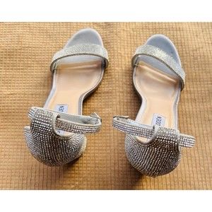 Steve Madden Carrson Rhinestone Ankle Strap Block Heel Silver 11M