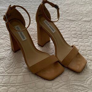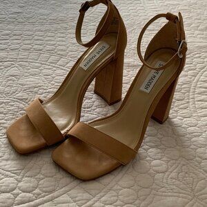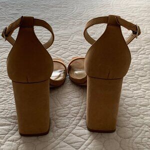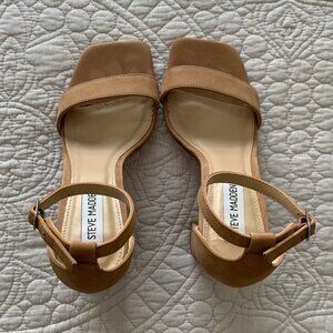 Steve Madden Carrson Strap Suede Block Heeled Sandal in Tan | Size 6M