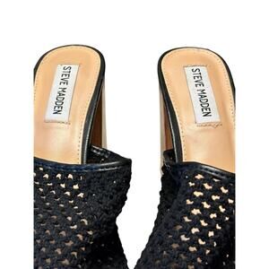 Steve Madden Cataleya Block Heel Sandal Size 10 Black Slip On High Heel Dressy Slip On High Heel Open Toe Fabric upper Synthetic lining and sole See picture for a very small mark on the heel