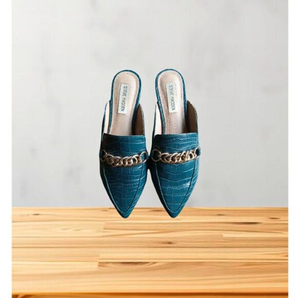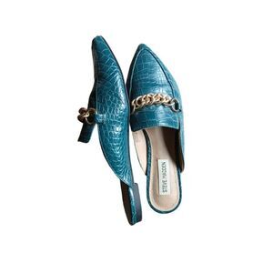 Steve Madden Chain Mule Loafers Size 6.5M Turquoise Crocodile Pointed Toe Flats