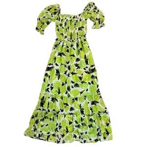Steve Madden Challis Smocked Tiered Lime Lined Maxi Dress Size XS