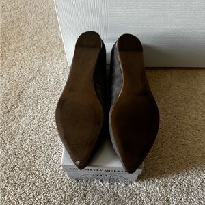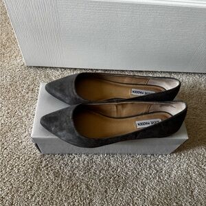 Elegant charcoal suede flats with a pointed toe. Ideal for versatile styling. Lightly worn almost new!