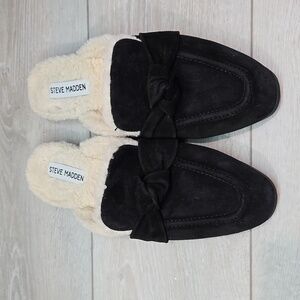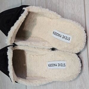 Steve Madden Chart Leather Upper Insulated Black Clog Mule Slippers Shoes 8.5