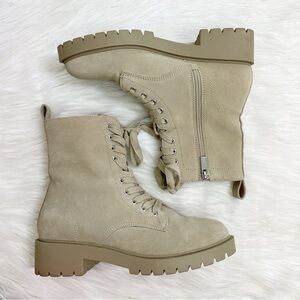 Steve Madden Checker Lug Sole Combat Boot in Taupe Suede Leather Women’s Size 8