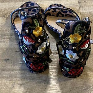 Steve Madden Cheetah Embroidered Block Heel sandals Size 8