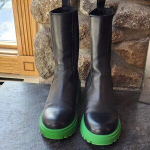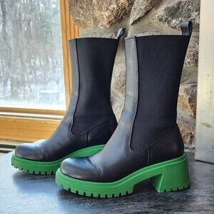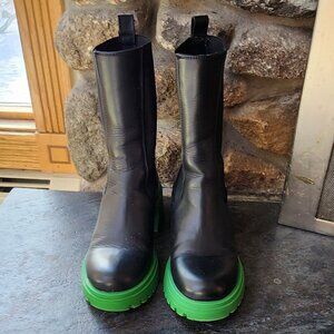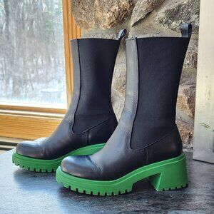 Steve Madden Chelsea Hesitant Black/Green Pull On Mid Calf Moto Boots Size 5.5. Fashion forward for Spring! Like new!