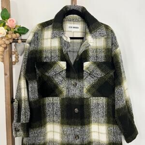 Steve Madden Chloe Shacket Black Plaid Stitch Size Small