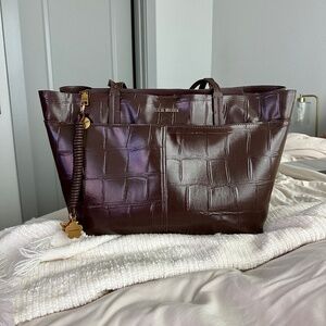 Steve Madden Chocolate Brown Croc Tote Bag Laptop Friendly