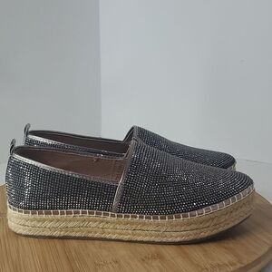 Steve Madden Chopur Embellished Espadrilles Silver Glitter Flats Size 6.5 B