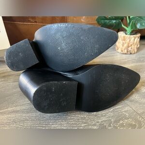 Steve Madden Clarise Black Leather Pointed Toe Chunky Heel Ankle Booties. Size 7