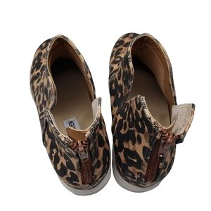 Excellent used condition! Lifted with a hidden wedge, this street-ready sneaker is styled with a notched topline and easy-access back zip for a sporty touch. Brown and black, leopard canvas upper. High Top. Back zip closure.