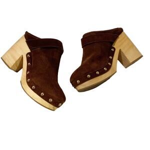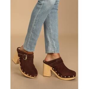 Classic clog styling gets a scene-stealing lift in this stylish mule lifted by a woodgrain platform and heel.