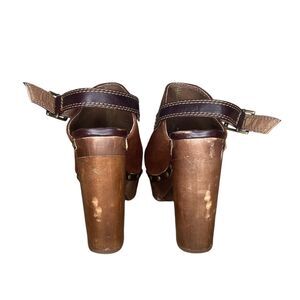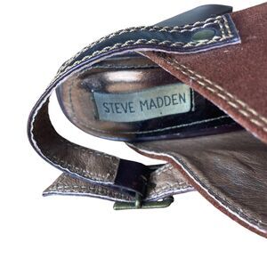 Elevate your shoe game with these stylish Steve Madden Clogs in size 7.5. The Carnee Wooden Round Toe Studded Mule Heel Suede design is perfect for any occasion and features a solid pattern, buckle closure, and adjustable strap. The ultra-high block heel adds a touch of bohemian and chunky vibe, making it a perfect addition to your Y2K and 90s collection.