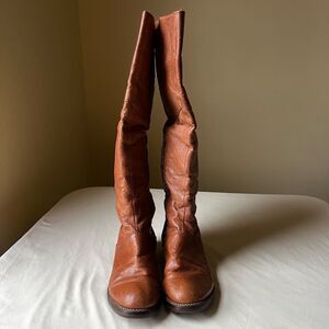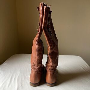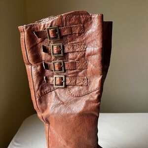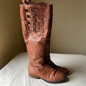 Steve Madden Cognac Leather Knee High Riding Boots Buckle Round Toe Women's 7
