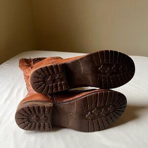 Steve Madden riding boots, cognac brown leather boots, buckle strap boots, tall leather boots, equestrian boots, vintage style boots, festival boots, boho western boots, classic round toe boots, Y2K brown boots