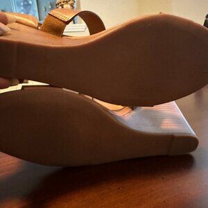 Steve Madden Cognac Leather Wedge Strappy Sandals
