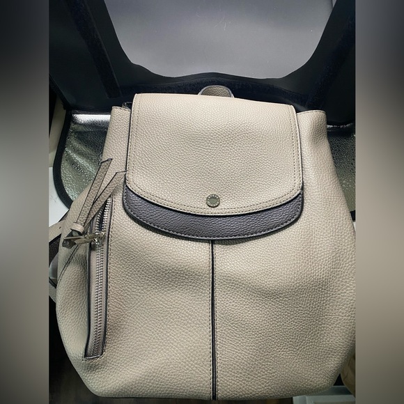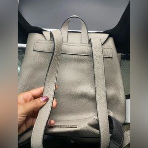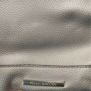 Preloved Steve Madden Color Block Backpack that is grey and black with silver finishes.