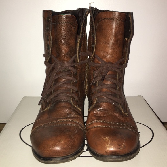 Comfortable. Decently worn Medium-wear Brown. Lace up Steve Madden combat boots.