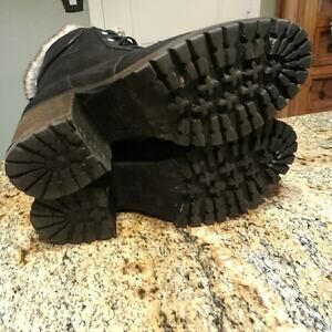 Steve Madden Comfort Faux Fur Trim Lace Up Combat Ankle Boots Bootie Black 9