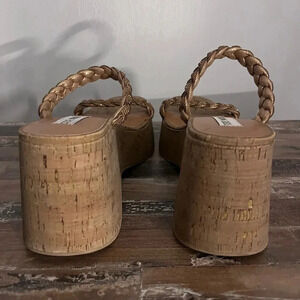 Rhinestone braided straps across the top of the DANYA slide sandals are a sparkly contrast to the faux cork wedge sole.