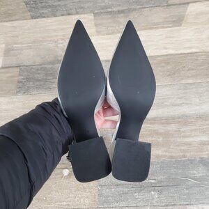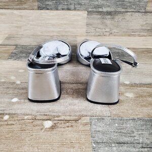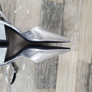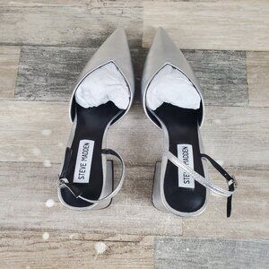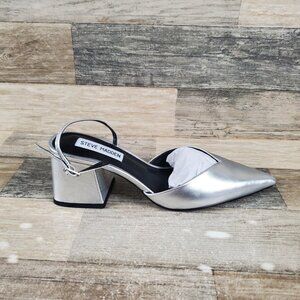 Steve Madden Courtnie Womens Pumps Sz 7 M Block Heel Silver Leather Slingback