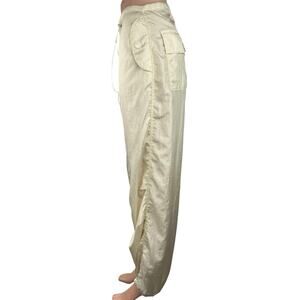 Steve Madden Cream Satin Silky Tapered Drawstring Windbreaker Parachute Pants S