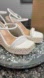 Stylish Steve Madden wedges with cream and white accents. Perfect for adding height and elegance.