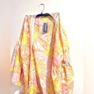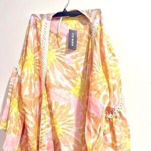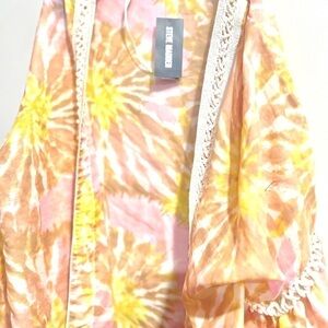 Steve Madden Crochet-Trim Tie-Dyed Kimono 31×32 Multicolor, swim shirt…