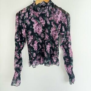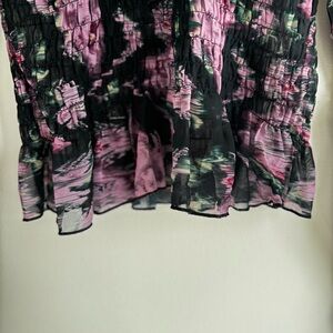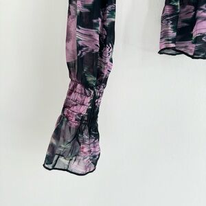 Steve Madden Crop Long Sleeve Presley Top Smocked Purple Floral Womens Medium