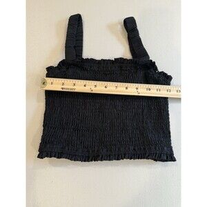 Steve Madden Crop Top Womens Small Black Smocked Stretch Sleeveless Linen