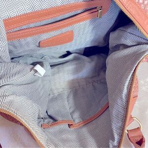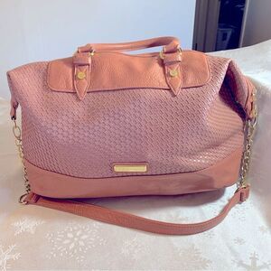 Width 20” Height 12” Steve Madden Crossbody Top Handle Handbag XL Pink Blush & Tan Vegan Leather Removable Chain Strap NWOT Perfect Gorgeous