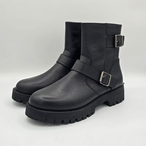 Steve Madden “Crusader” Women’s Genuine Leather Inside Zip Lug Boot (Black) NEW