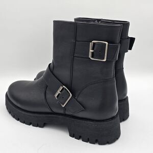 Steve Madden Crusader This Boot Features a Round Toe with a just Above Ankle Silhouette Reinforced with Strap Accents and Substantial Buckle Hardware. Inside Zipper for Easy On & Off. A Wide TPR Rubber Sole with a Block Heel Provides a Solid Foundation for this Inspired Design.