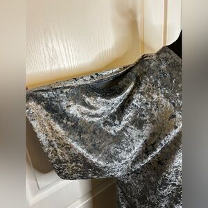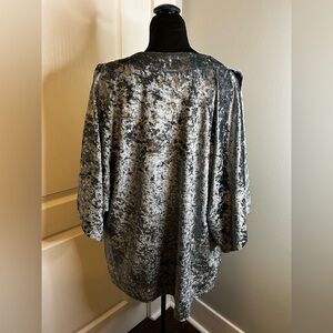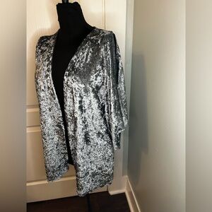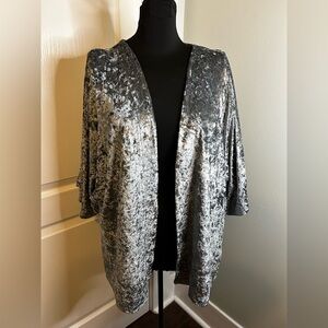 Steve Madden Crushed Velvet Silver Open Front Cold Shoulder 3/4 Sleeve Cardigan OSFM. One size fits most. Like new condition. Never worn. Pit to pit 25”. Length from shoulder to hem 28”