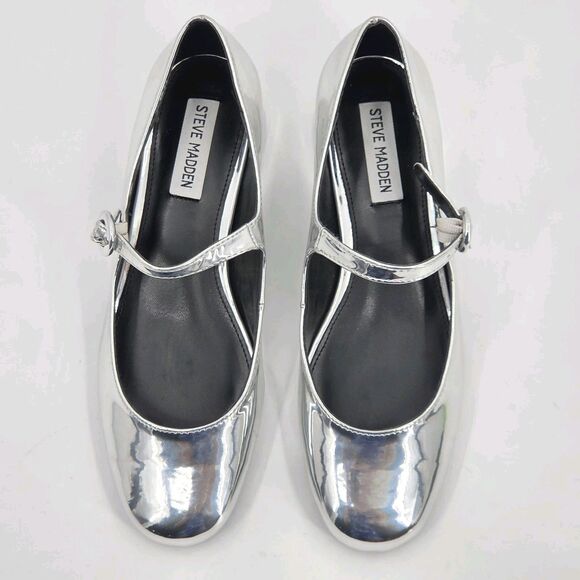 Steve Madden Cyndie Mary Janes Womens Size 8.5 Patent Silver Metallic Academia