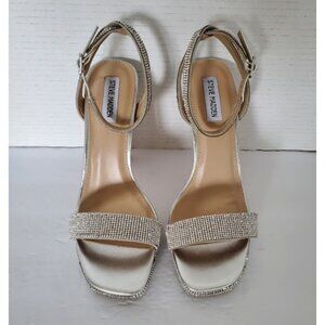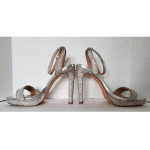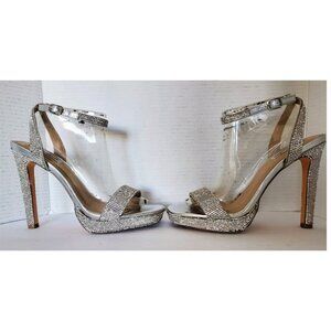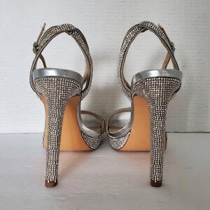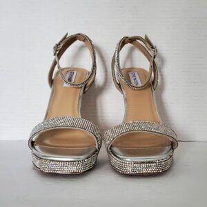 Steve Madden Damar Silver Rhinestone Platform Stiletto Heels Ankle Strap Sz 10