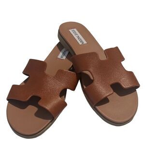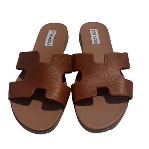 Steve Madden Daphne Brown Leather Slip On Flat Sandals Size 8