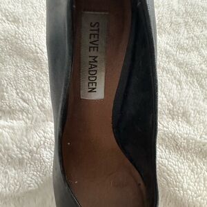Steve Madden Dejavu Leather Platform Pump Stiletto - Size 7M, Black, Pre-owned, has scoffed marks.(Sold as is, No returns)