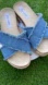 Chic denim blue slides with espadrille sole. Perfect for casual wear.