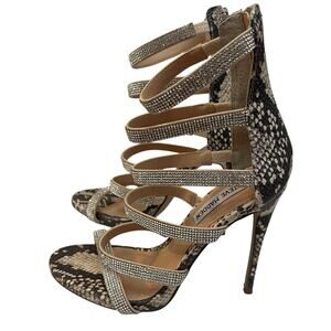 Steve Madden Desired Rhinestone Cage Heels 6M Snake Print Stiletto Club Concert