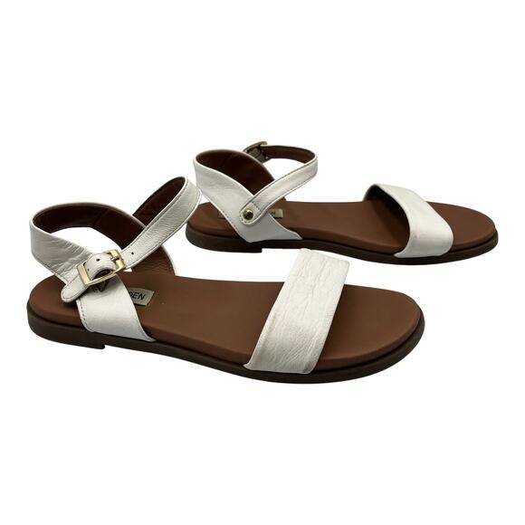 Steve Madden Dina Ankle Strap Leather Flat Sandals White Size 6.5M