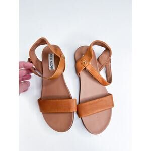 Steve Madden Dina Size 5.5M Women's Casual Leather Ankle Strap Flat Sandal Brown