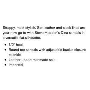 Designed with simple lines, the Steve Madden Dina Ankle Strap Sandal is a timeless go-to style that every girl can rely on during the warmer months. Ankle strap Adjustable buckle closure.