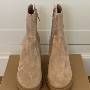 Steve Madden Dovesy Platform Tan Suede Heeled Boots Booties Women's Sz 7.5